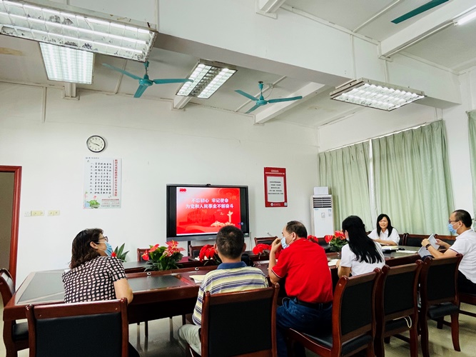 7月1日,基础教学部(人文社科部)教工党支部在部门411会议室开展党史学习教育专题学习活动---从伟大觉醒到开天辟地,会议由教工第二党支部书记王彤彤主持。