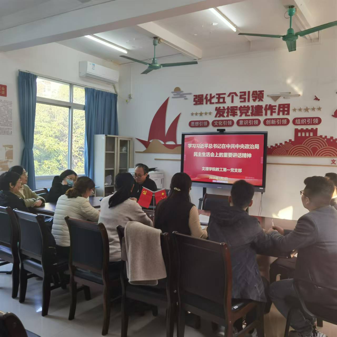 2025年1月2日,m88在线网站入口教工第一党支部在行政楼A2楼418会议室召开专题学习会,专题学习习近平总书记2025年新年贺词及在中共中央政治局民主生活会上的重要讲话精神。会议由教工第一党支部书记刘卫斌主持,支部全体党员参加。