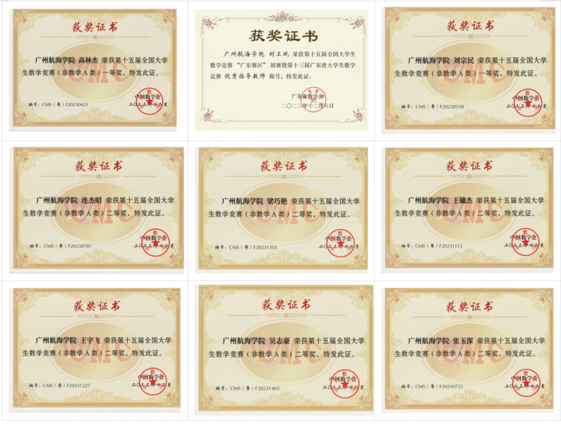 (基础教学部、学工部供稿)近日,由中国数学会组织、广东数学会与广东工业大学承办的2023年第十五届全国大学生数学竞赛初赛(广东赛区)结果揭晓,我校共有40名学生参加了非数学A类组的比赛,共有15名学生斩获佳绩。其中,物联网工程的高林杰和软件工程的刘宗民获分别获一等奖,交通运输专业梁巧艳等6位同学分别获二等奖,土木工程专业郑翰声等7位同学分别获三等奖;基础教学部教师刘卫斌获赛区“优秀指导教师”称号。