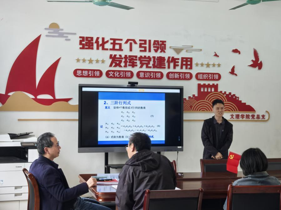 郑毅博士和于爽博士试讲《线性代数》课程内容。通过高中所学内容,逐步引入新知识,有助于学生的理解。