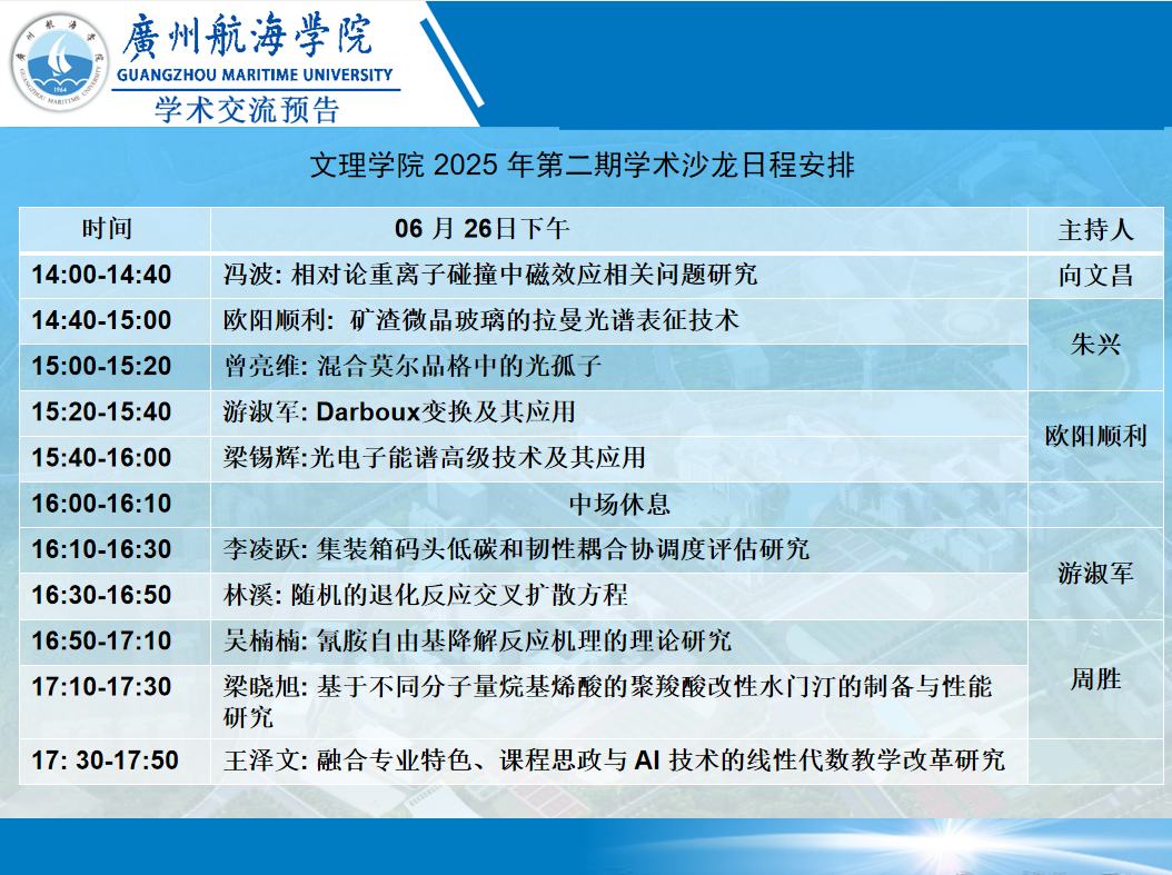 m88在线网站入口 2025 年第二期学术沙龙日程安排