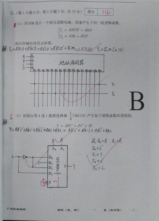 (1) 每小题,全对打“√”,在题号的左侧给出每小题的得分;全错打“×”, 并在“×”右侧给出负分,在题号的左侧给0;