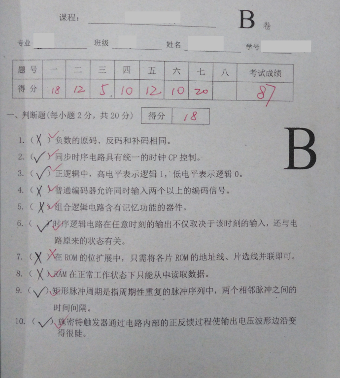 (3) 每大题总得分,填在大题右侧的得分栏(见图1)。