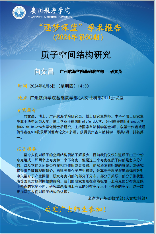 “逐梦深蓝”学术讲座预告:向文昌教授学术讲座