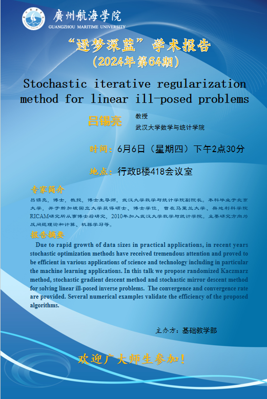 “逐梦深蓝”学术讲座预告:吕锡亮教授学术讲座